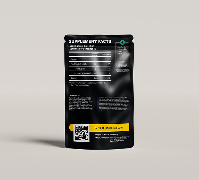 Tapioca Syrup, Sugar, Water, Mct Oil, Apple Pectin Powder, Natural Lemon Flavor, Natural Black Tea Flavor, Citric Acid, Sodium Citrate, Malic Acid, (Proprietary Blend), Hemp Derived Cannabinol Delta 8, Emulsifiers, Olive Oil))., Natural Flavors, Sucralose, Potassium Citrate, Natural Shade Bright Yellow.